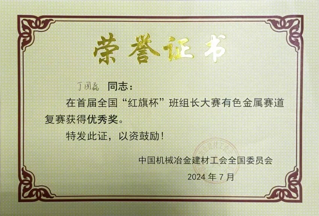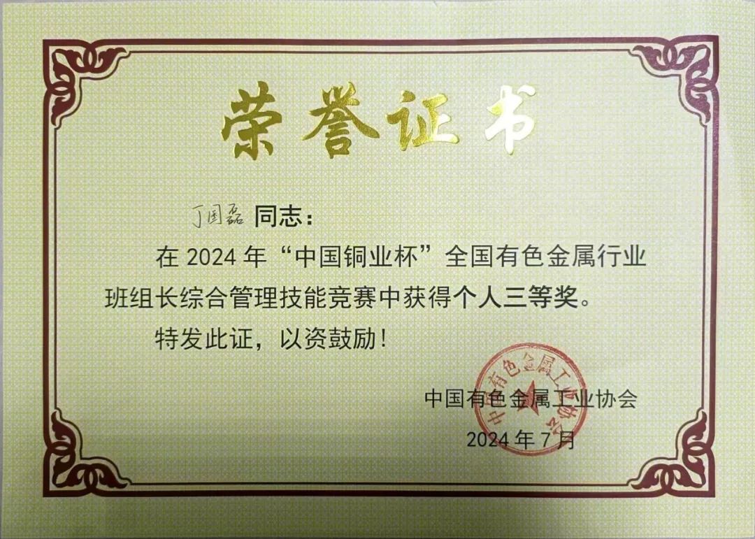 中色东方职工丁国磊荣获全国“红旗杯”班组长大赛复赛优秀奖和“中国铜业杯”三等奖