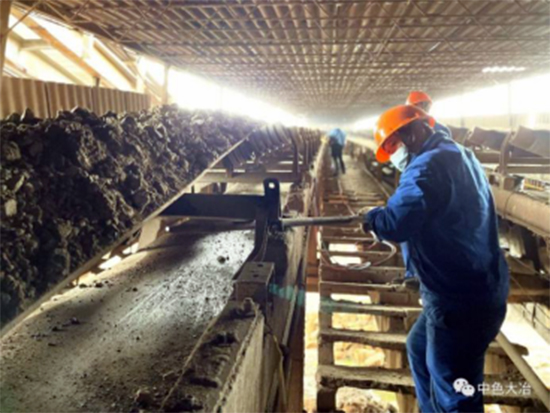 中色红透山团员共青团回收分类处理矿斗运送环节中洒落的方解石