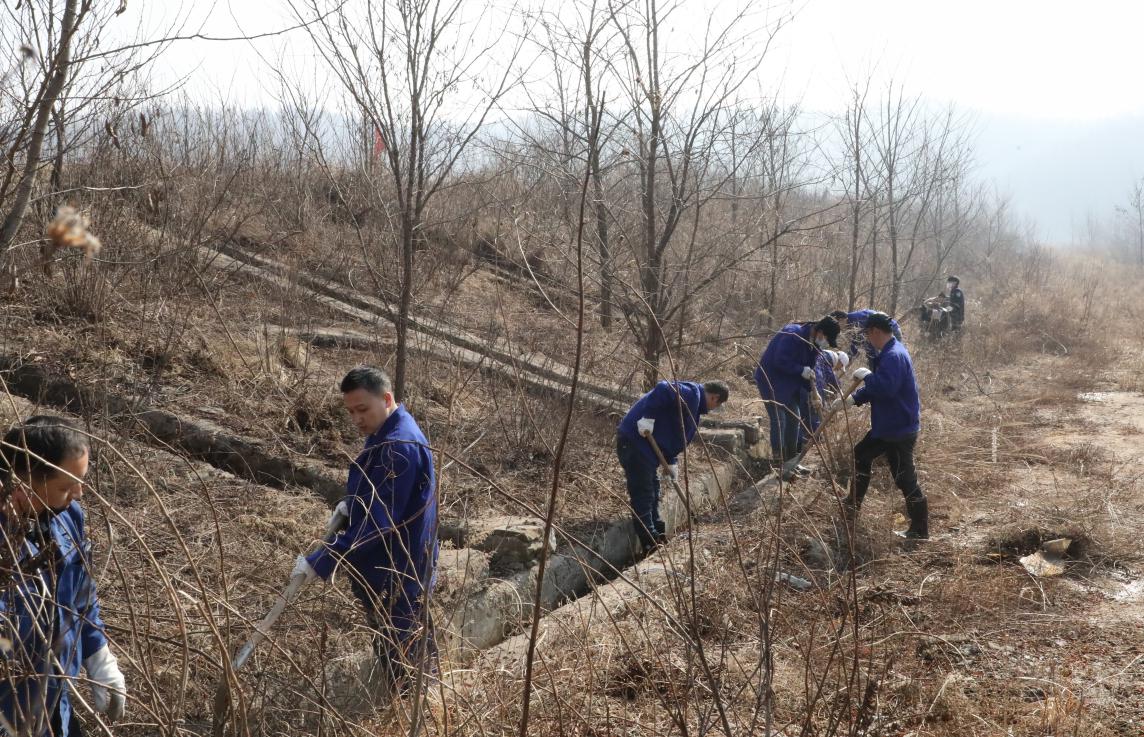 图丨中色红透山团员少年清除垃圾尾矿库坝肩排水的沟