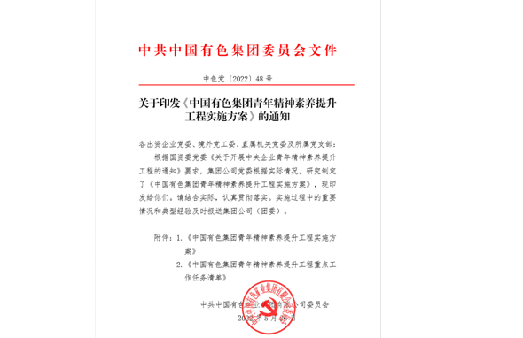 关于印发《中国有色集团青年精神素养提升工程实施方案》的通知
