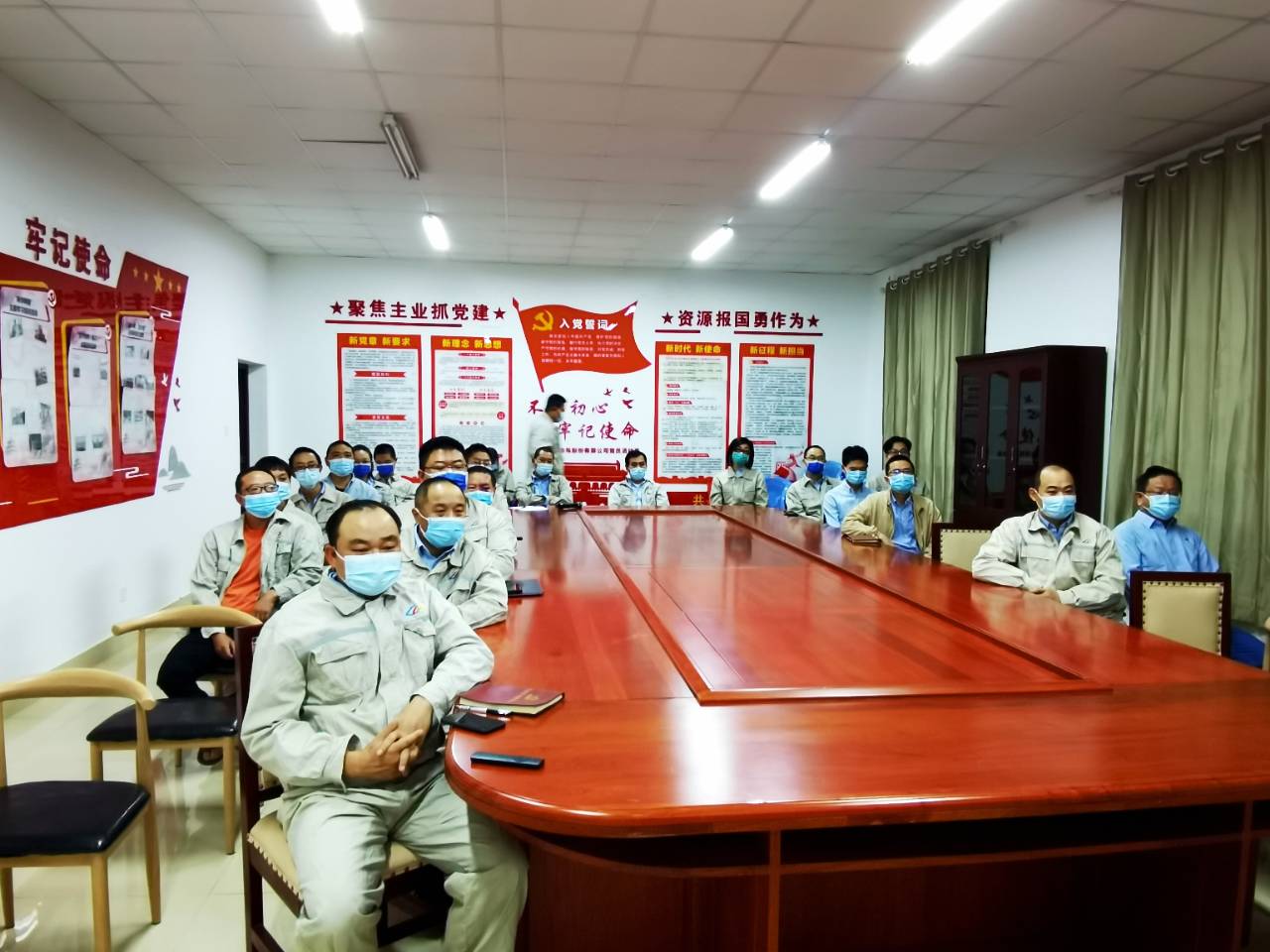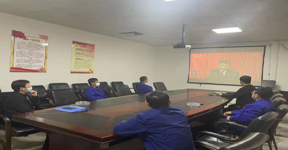 中色奥博特板带党组织观看视频工地